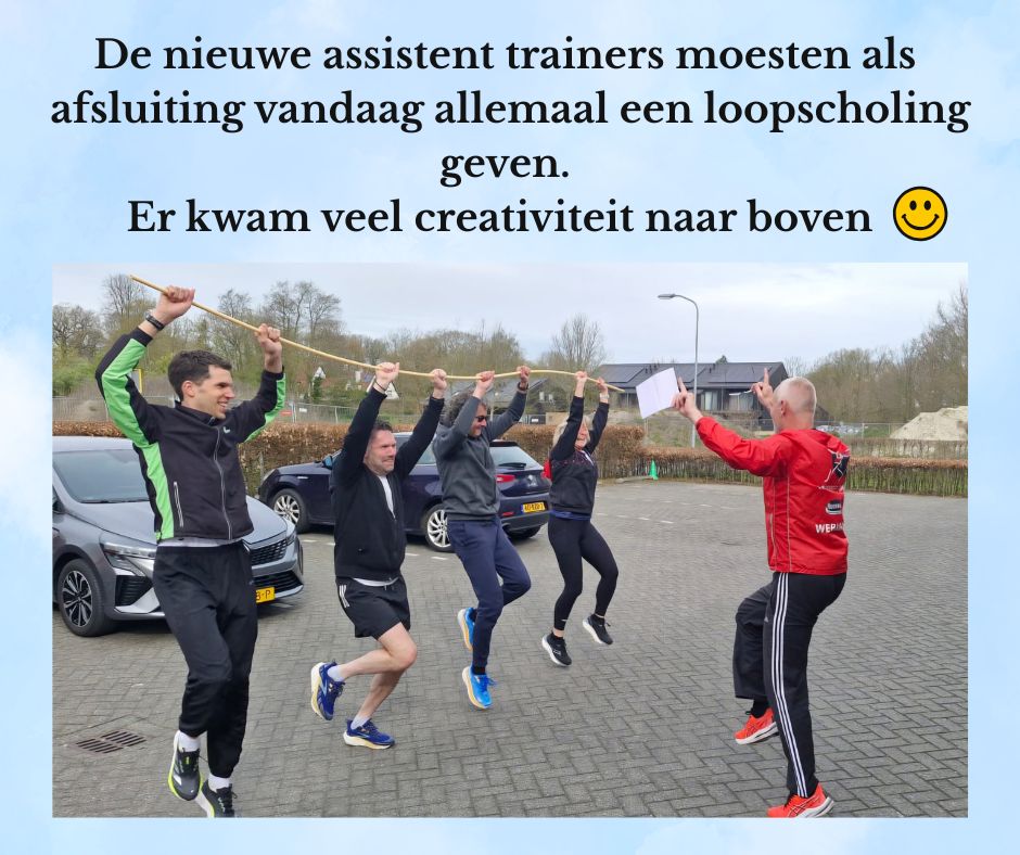 Het verhaal van 1 van de nieuwe assistent-trainers; "Coos heeft ons goed laten zien hoe wij als assistent-trainers aan de slag kunnen gaan. Een aantal van ons vinden dat nog wel een drempel maar er zijn ook deelnemers die al volledige trainingen verzorgen. Als huiswerk kregen we opdrachten mee om zelf een warming up of loopscholing te maken.